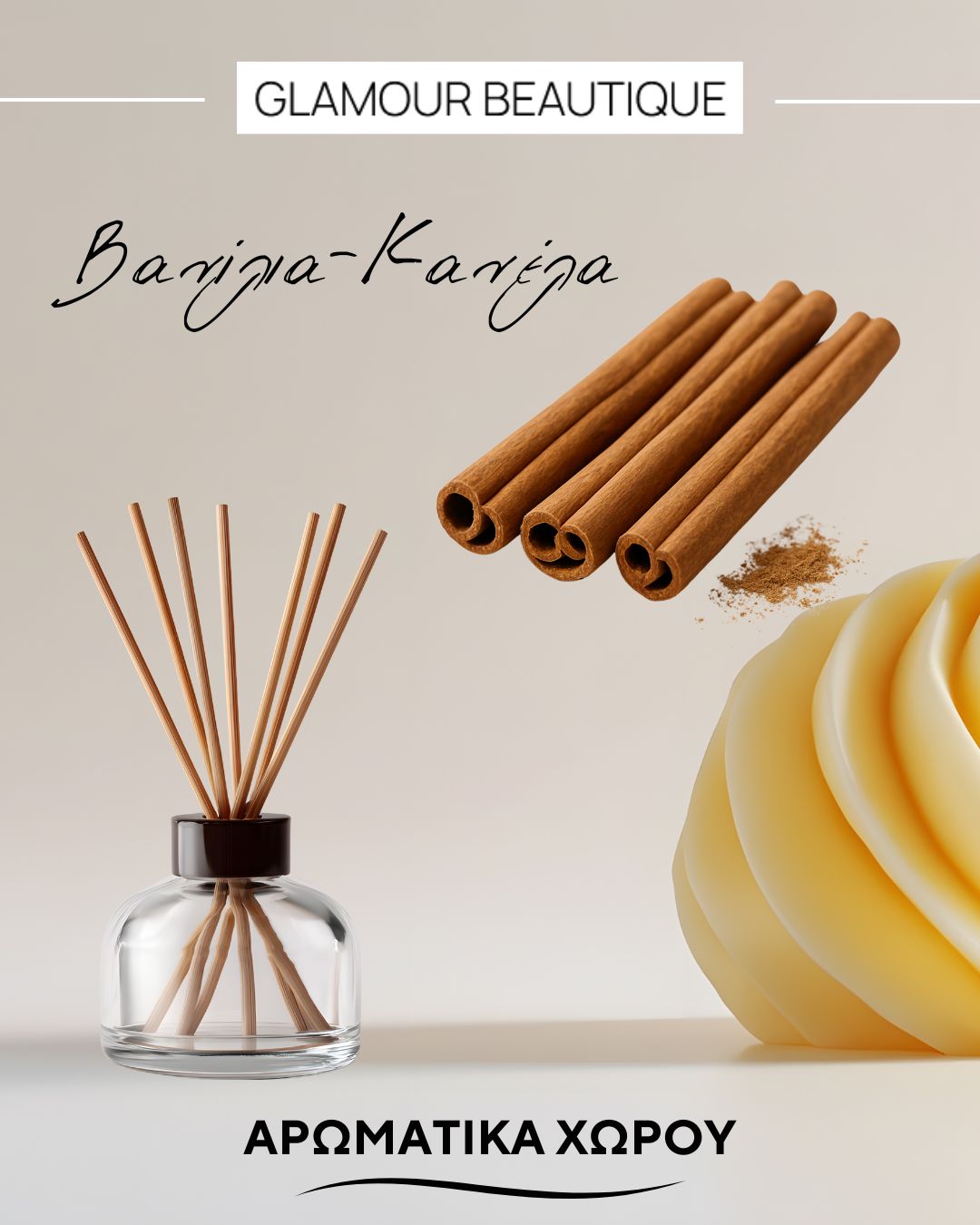 Ενα ζεστο γλυκο αρωμα που γεμιζει το χωρο με θαλπωρη κ χαλαρωση.Ο αρμονικος συνδυασμος κρεμωδους βανιλιας και πικαντικης κανελας δημιουργει αισθηση ανεσης και φιλιξενιας για καθε σπιτι και επαγγελματικο χωρο.Νοτες:κρεμωδης βανιλια και ζεστη κανελα.